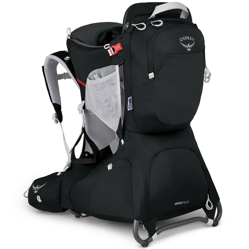 Speziell auf die Bedürfnisse einer wanderlustigen Familie wurde der Osprey Poco Plus angepasst und designt. Selbstverständlich steht die Sicherheit an oberster Stelle, somit wurden auch die Features und Eigenschaften dieses Tragerucksacks mit exzellenter Qualität umgesetzt. Angefangen bei dem Fit-on-the-Fly Gurtsystem. Es lässt sich schnell und bequem individuell anpassen, somit sich Eltern und Großeltern beim Tragen abwechseln, ohne dabei auf den eigenen Komfort verzichten zu müssen. Aufgrund der verstellbaren Sicherheitsschultergurte und dem höhenverstellbaren Kindersitz passt sich die Kinderkraxe an verschiedene Größen und Gewicht des Kindes an und wächst somit mit dem kleinen Abenteurer mit. Diese kann auch einfach zusammengefaltet und somit platzsparend im Auto oder Schrank nach einem schönen Tag im Freien verstaut werden.